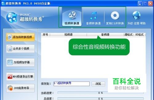 如何把视频转换成音频?今天我就来教大家使用综合性音视频转换软件《超级转 换秀》快速将视频转换成MP3,OGG,WMA,WAV等众多流行的音频格式。软件除了具备超强的转换功能外,还支持混音、合并音视频、添加滚动字幕、截取音视频等众多实用的功能。对于我们这些新手而言,简单的几个步骤,即可达到专业的制作,非常方便。