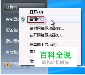 打开开始菜单,右键“电脑”选择“管理”。