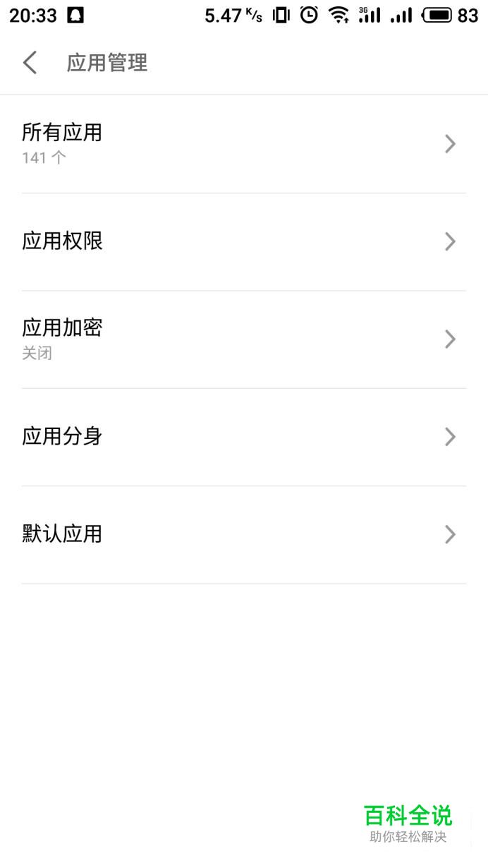 进入应用管理界面,在应用中蒂娜及“默认应用”