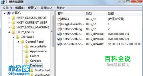 在左侧窗口,展开到HKEY_USERS--DEFAULT--Control Panel--Desktop。