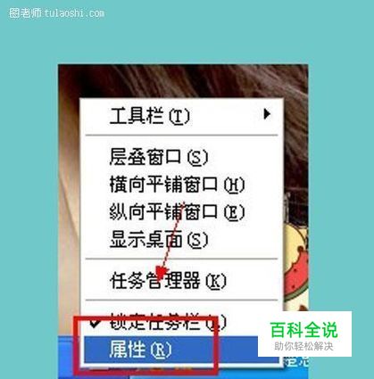 第二步:用鼠标右键点击任务栏的空白位置,打开属性。