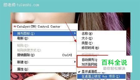 第一步:用鼠标右键点击电脑桌面空白处,选择排列图标,将自动排列和对齐到网络取消勾选。