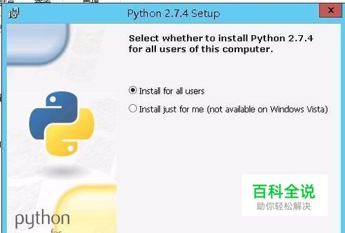 安装 Python 2.7.4 32 位版本 双击Python 2.7.4软件进行安装。