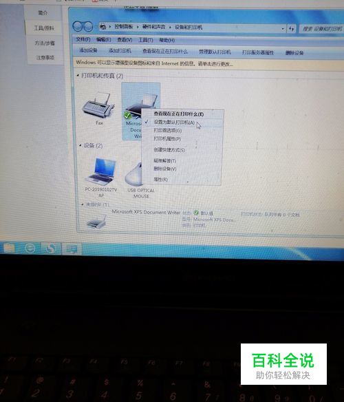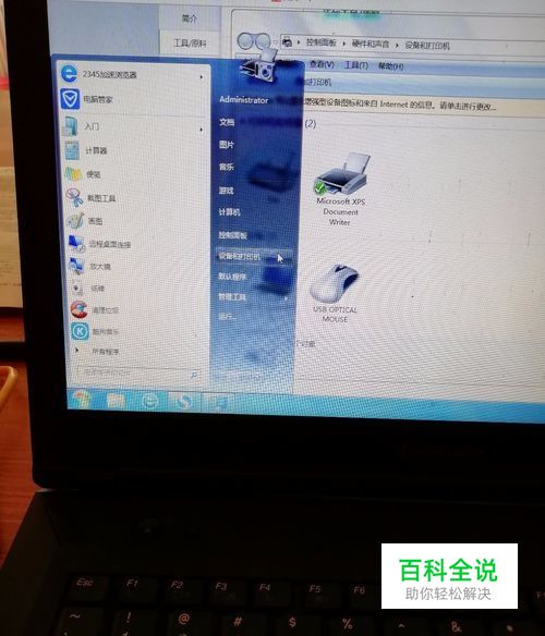 点击【开始】按钮,选择【设备和打印机】,如下图:在弹出的窗口中找到想共享的打印机,在该打印机上右键,选择【打印机属性】,如下图: