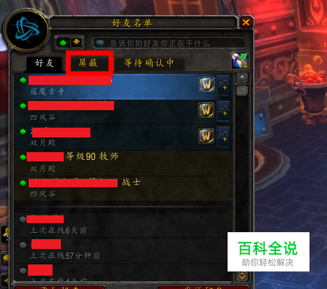 魔兽世界游戏为我们提供了屏蔽玩家的功能,这里简单介绍一下具体如何操作的方法。