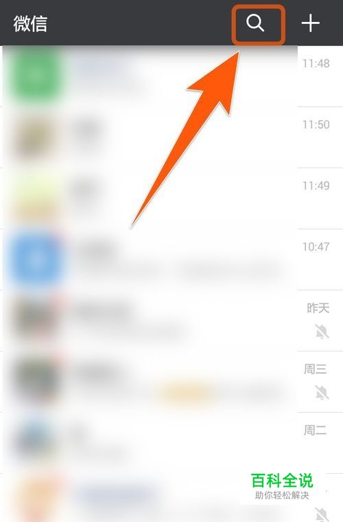 要查询在微信上的收付款历史记录,先打开微信,点击右上角的放大镜