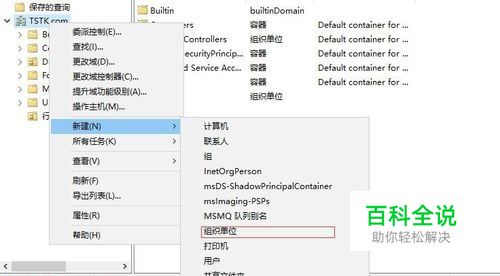 为了更好的管理,我们把用户按部分进行分组,在域根目录下右击鼠标选择【新建】-》【组织单位】