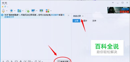 我们点击聊天窗口右下角的“消息记录”,然后会蹦出来一个消息记录的页面