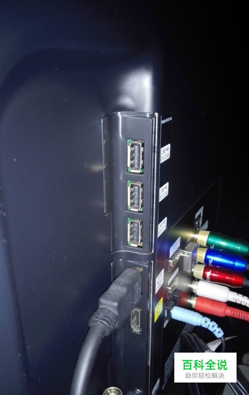 将U盘接入电视 三星智能电视的接口一般都在电视的背面,而USB接口也不例外。笔者家里的电视就有3个USB接口,也就是说,可以同时连接3个移动储存器。在电视启动后,您需要在电视机的背面找到USB接口,并将U盘插入进去。