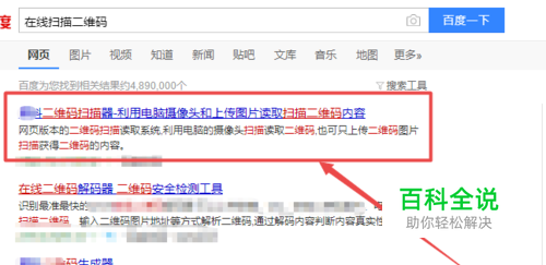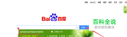 双击桌面上的浏览器快捷方式打开它,然后在输入框中输入 在线扫描二维码 回车搜索。
