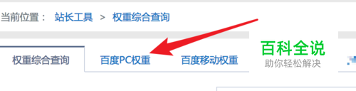 打开网页后,先点击上方的‘百度PC权重’选项。