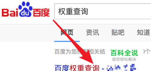 打开百度网站,搜索‘权重查询’,然后点击打开第一个网站。