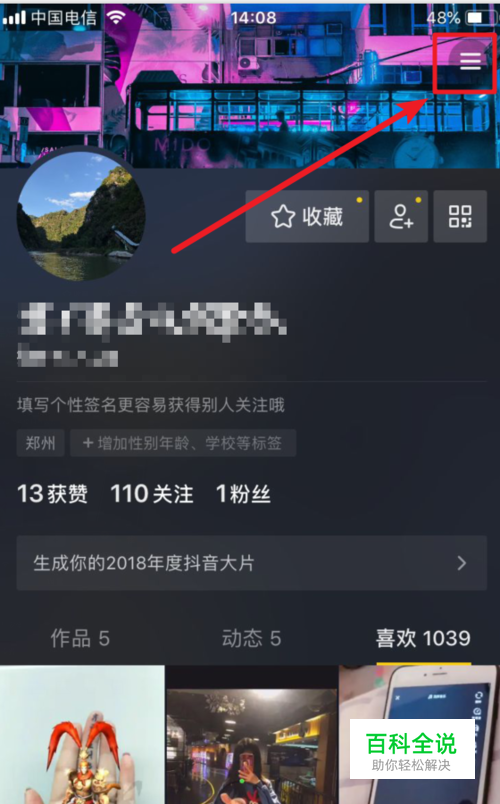 我们打开抖音,登录需要认证的账号以后,点击我的选项,然后选择上方的三个横的图标。