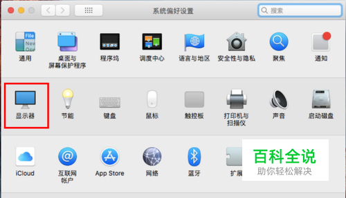 打开系统偏好设置窗口之后,点击其中的“显示器”。