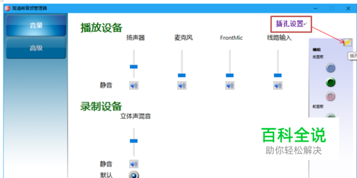 Win10系统,音箱插在后面板没有声音;插前面板有声音。
