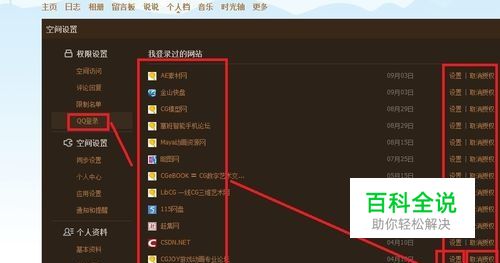 在空间设置里找到QQ登陆。会出现自己曾经授权过的网站。