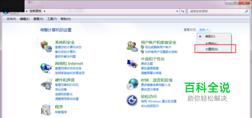 在控制面板中,查看方式,调整设置为小图标,便于我们更直接查看,也可以设置为大图标,这里随意,找到显示设置图标,点击进入显示