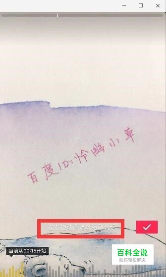 左右拖动声谱,就可以剪切音乐了,比如我们拖动到从15秒开始,前面15秒就会被剪切掉了,如果是后面音乐太长,我们拍完视频停止即可。