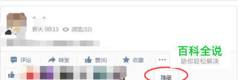 然后进入到个人中心页面,在某个好友动态后面点击“隐藏”。
