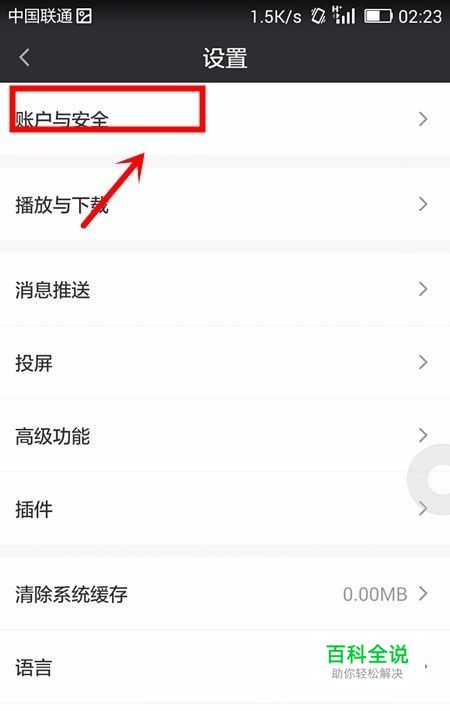 这时在打开的设置页面中选择账户与安全选项;