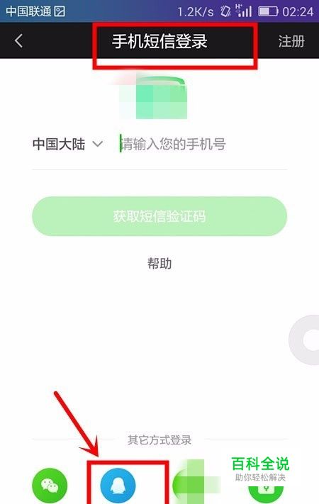 此时在出现的注册登录页面中选择其它方式登录模块中的QQ图标;
