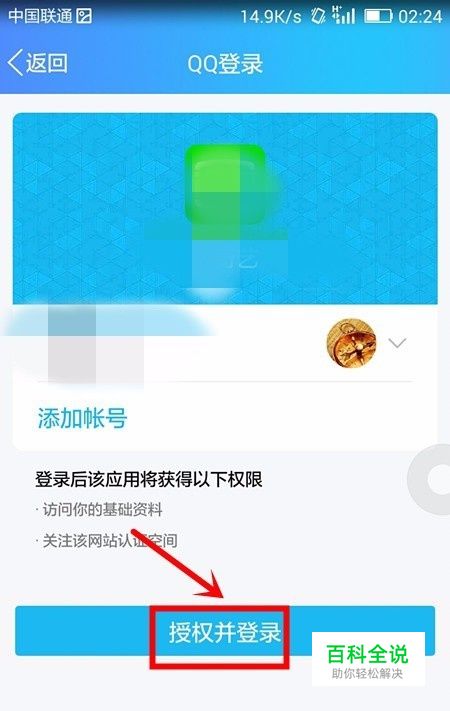 马上手机就会自动识别正在手机上使用的QQ帐号,我们点击页面中的授权并登录即可。