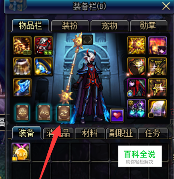 首先,进入游戏后打开人物背包栏。在如图所示的位置打开换装背包。