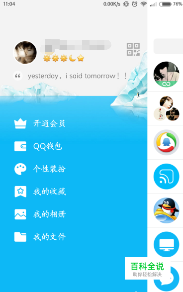 在你的主界面任意一个栏目下的屏幕上向右滑,唤出主菜单。或者直接点击右上角的头像也可以。唤出之后,点击左下角的设置按钮。