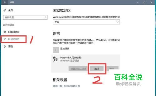 选择区域和语言。然后在添语言中打开选项。