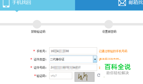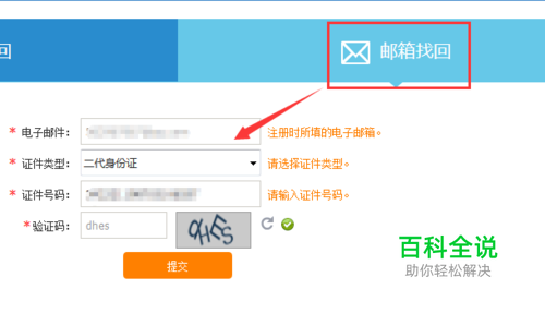 通过邮箱找回。首先选择邮箱找回,输入注册时填写的 邮箱以及对应的 身份证号码,然后点击提交(前提是绑定了邮箱才可以)。
