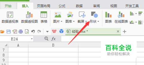 点击插入后,在下方的选项框中选择形状图标,点击形状按钮,如下图所示。