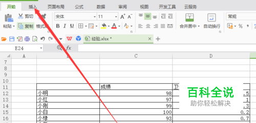 首先打开需要操作的EXCEL表格,在表格中,点击上方菜单栏中的插入菜单。