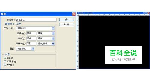 01、按Ctrl+D快捷键,新建一个文件,在新建对话框中,单击预设下拉菜单列表按钮,选择800*600,新建一个800pixels*600pixels大小的操作窗口。单击工具箱中的默认前景色和背景色按钮和切换前景色和背景色按钮,将前景色设置为白色,背景色设置为黑色,再按Ctrl+Del快捷键将画面填充为黑色。