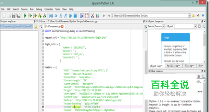如果使用python的主要目的是为了进行科学计算、数据分析、爬虫等项目,强烈推荐使用Anaconda而不是其他IDE。 Anaconda在python语言外,还集成了numpy、scipy、matplotlib等科学计算包,以及beautiful-soup、requests、lxml等网络相关包。 安装Anaconda后,基本不再需要费劲地安装其他第三方库了。