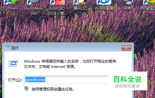首先,打开开始--运行,输入gpedit.msc,当然你可以使用快捷键wondows+R打开运行。