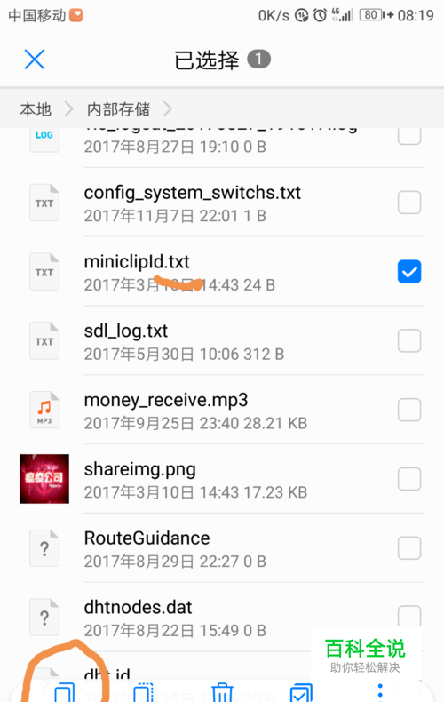 打开文件管理器,随便选个位置,由于手机貌似不能够新建文件,只能新建文件夹,所以可以随便找个以txt结尾的文件(不一定非要是txt结尾,其实都可以,只要赋值一个文件就好,别太大),复制一个。