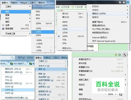 对于支持网页缩放的浏览器,在菜单栏里都会有“缩放”选项,一般在“查看”菜单栏内,点击“放大”“缩小”即可实现网页缩放。