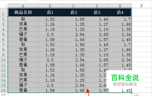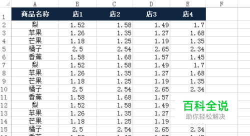 打开一个表格数据,现在我要按商品名称进行排序。