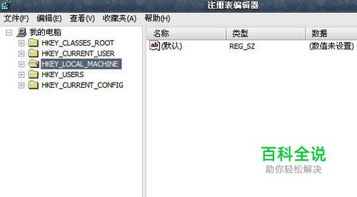 进入注册表编辑器,找到“HKEY_LOCAL_MACHINE”,点前面的“+”
