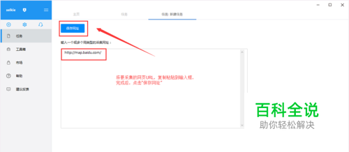 2)将要采集的网站URL复制粘贴到输入框中,点击“保存网址”