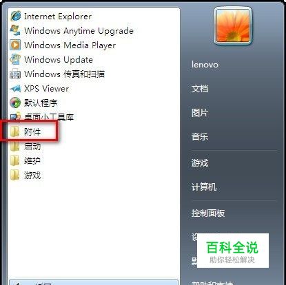 1、单击「开始」按钮选择所有程序--附件。