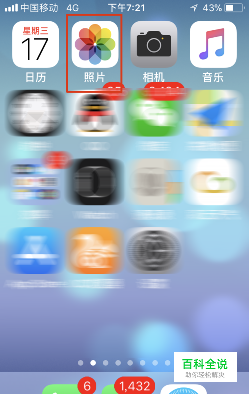 首先进入苹果手机的首页,点击“照片”这个图标。可以看到非常多的图片文件夹。