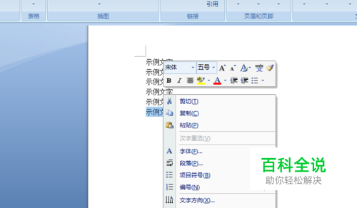 接着选中需要添加超链接的文字,并点击鼠标右键,选中”超链接“,如下图