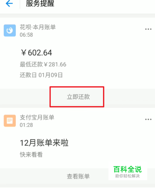 每个月月初,比如说是当月的一号,我们就会接收到花贝还款的消息提示。在信息来我们可以查看到这样的花呗还款信息。
