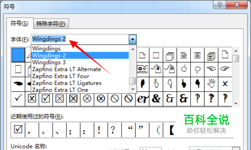 打开符号窗口,在字体中选择“Wingdings 2”