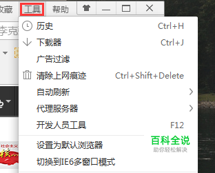 打开IE浏览器(没错,就是IE浏览器),在右上角找到工具栏,点击并选择Internet选项。