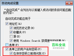 在新弹出的对话框中勾选“表单上的用户名和密码”,这样每次保存密码之前,浏览器都会询问你要不要保存密码,我们可以根据自己的需要适当的对密码进行保存。