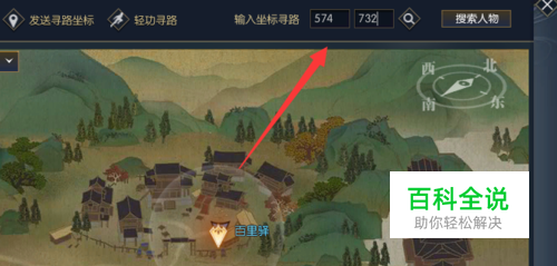 首先我们打开地图输入【574,732】坐标自动寻路。