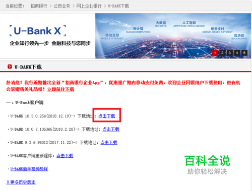 首先登录招商银行企业版网银下载页面,下载最新的U-BANK