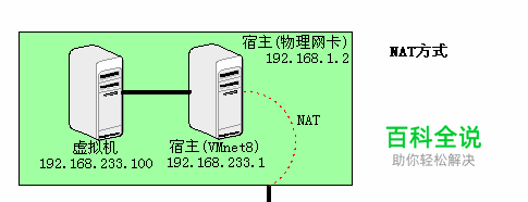 NAT模式是最简单的实现虚拟机上网的方式,你可以这样理解: